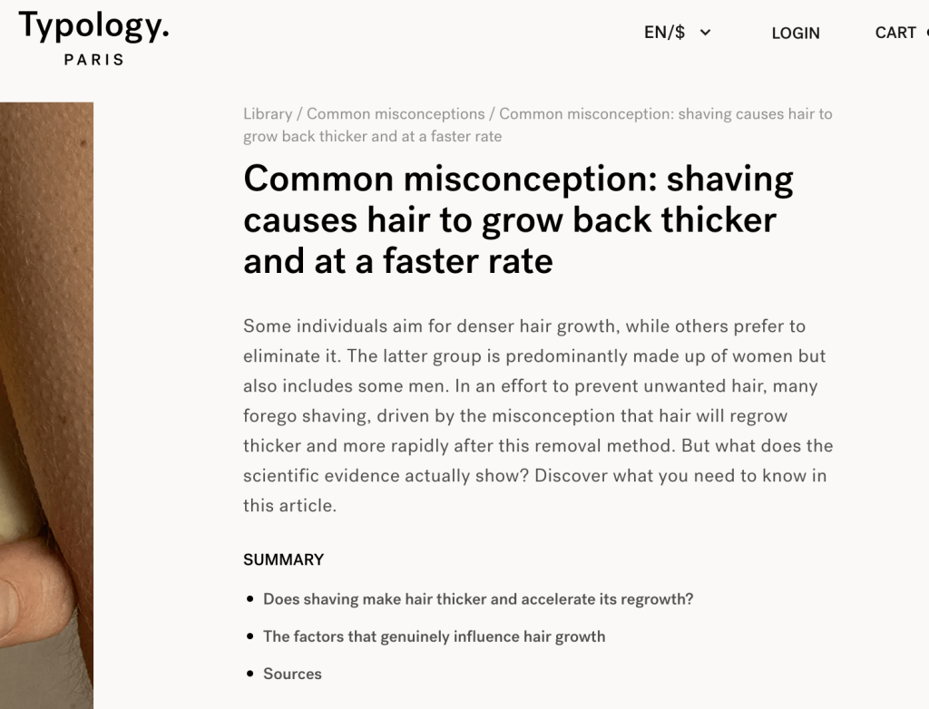 While scrolling on Tiktok, I came across a video/image that claims shaving your hair can cause it to grow back coarser and darker than before. I was immediately drawn to the daunting headline that appeared as a huge warning, emphasizing the reality of dire consequences if one shaved their hair. This is a claim I have seen countless times before, but I’ve remained skeptical of whether or not actual evidence existed to prove this claim true, or if it continued to circulate around without evidence in a careless and misleading manner.